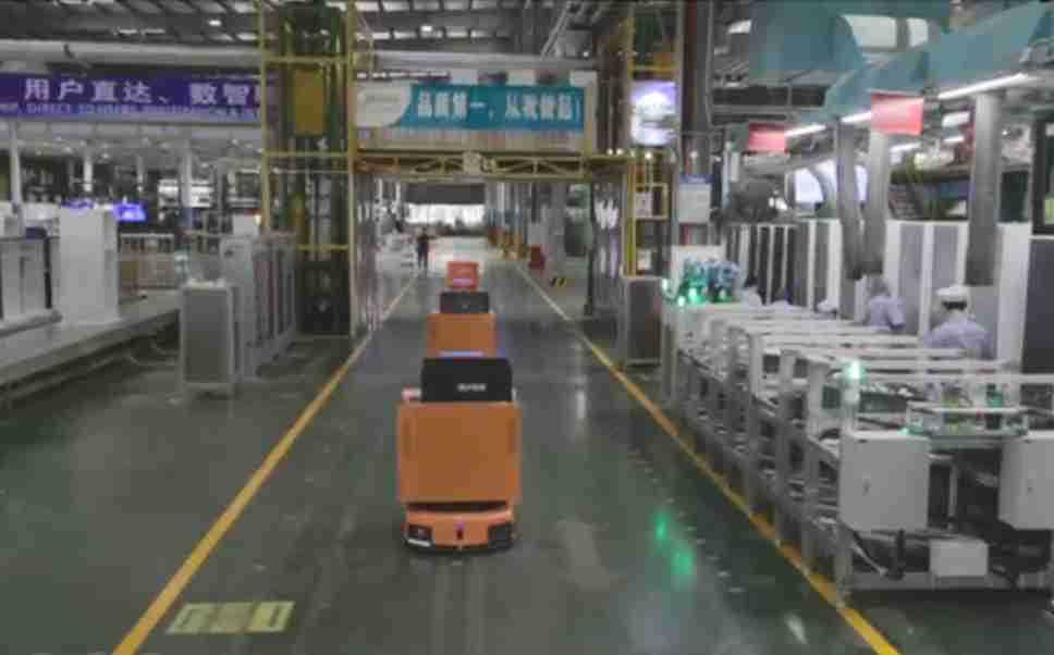 为车载冰箱物流配送打造的智能解决方案,,,,包含产中物流通过潜伏举升AMR搬运至线边,,,,产后成品物流智能仓储,,,,流程包含产中物流智能齐套入库,,线边安灯叫料AMR智能配送至线边,,成品入库、、、出库,,,,通过无人堆高车机器人,,,,智能仓储管理替代人工作业管理,,,,实现更高存储、、、、更高效率、、、更具柔性化的解决方案。。。